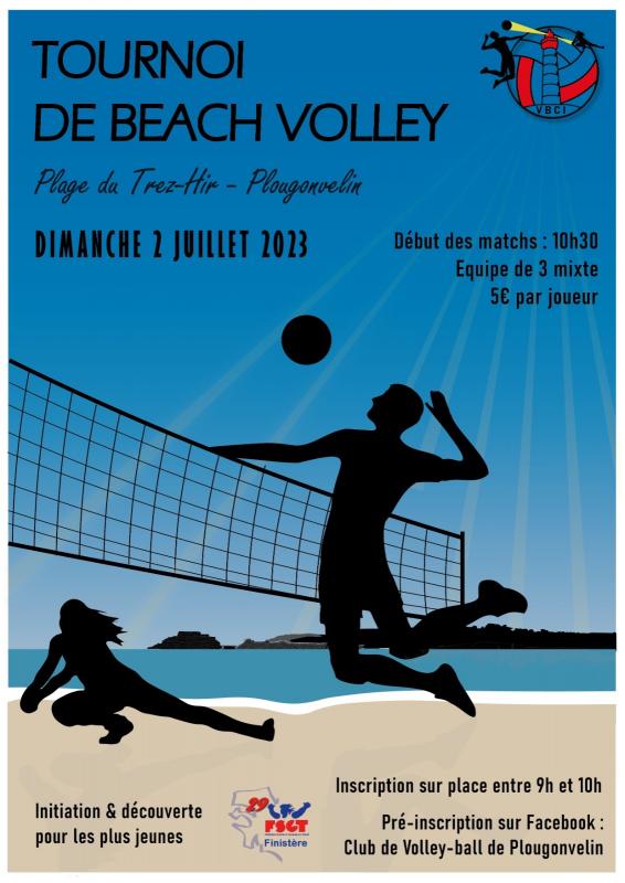 Le dimanche 2 Juillet 2023, plage du Trez-Hir à Plougonvelin, tournoi de Beach Volley organisé par le VCI Plougonvelin, inscriptions à partir de 9h pour un début de tournoi à 10h30.