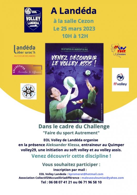 Dans le cadre du Challenge "Faire du sport Autrement" EOL Volley Landéda organise en la présence Aleksander Klessa, entraineur au Quimper volley29, une initiation au soft volley et au volley assis.