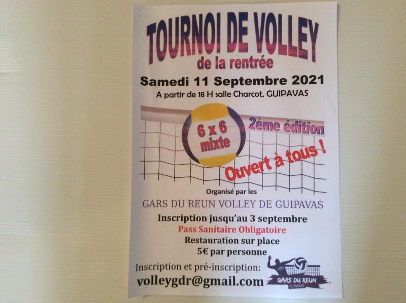 Les Gars Du Reun Volley organisent le tournoi de Volley de la rentrée le samedi 11 septembre à partir de 18h salle Charcot à Guipavas.